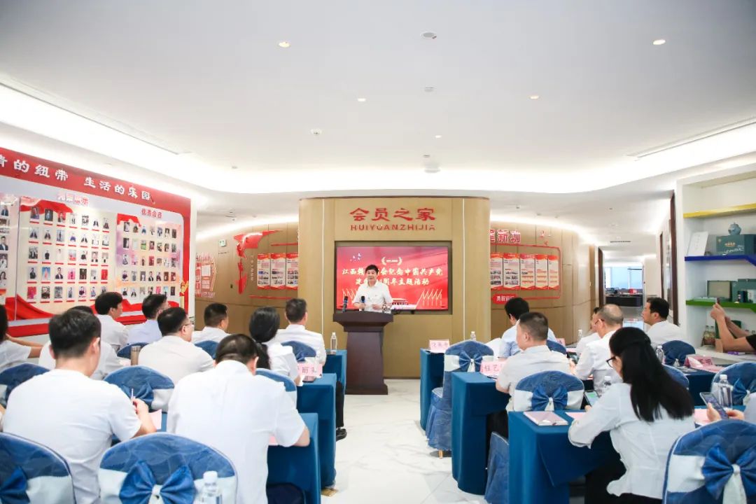 为庆祝中国共产党成立104周年,回顾党的光辉历程,总结党建工作经验,推动商会党建工作再上新台阶,激发广大会员党员的爱党爱国热情和干事创业激情,2025年6月28日下午,我会在商会会员之家举办纪念建党104周年主题活动。会长饶明芳,党委书记饶英奇,轮值会长李东,执行会长汪强辉,执行会长、第二党支部书记刘涛,执行会长聂丁科、罗贤敏,执行会长、南昌市德兴商会党支部书记程顺林,常务副会长兼常务副秘书长李太明,常务副会长程艺江,副会长、第一党支部书记王朝有,副会长、第二党支部副书记毛少华,副会长董阳东、章军明,执行秘书长张承凤,轮值理事兼常务副秘书长吴明珠,理事兼副秘书长邱双军、饶玉兰,会员、第一党支部副书记余珍如以及部分党员、会员参加活动。活动还邀请到南昌市德兴商会党支部代表、南昌市婺源商会党支部代表、南昌市铅山商会党支部代表共同参加。