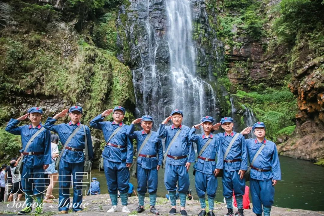 25日上午,活动全体成员统一着红军装前往井冈山最高峰-黄洋界,重走毛主席为打下新中国艰辛的历程之一。在石壁上看到“山下旌旗在望,山头鼓角相闻。敌军围困万千重,我自岿然不动。早已森严壁垒,更加众志成城。黄洋界上炮声隆,报道敌军宵遁。”毛主席这首《西江月 井冈山》的词,让大家深刻的感受到中国共产党人的初心,并怀着敬仰的心情留下合影。