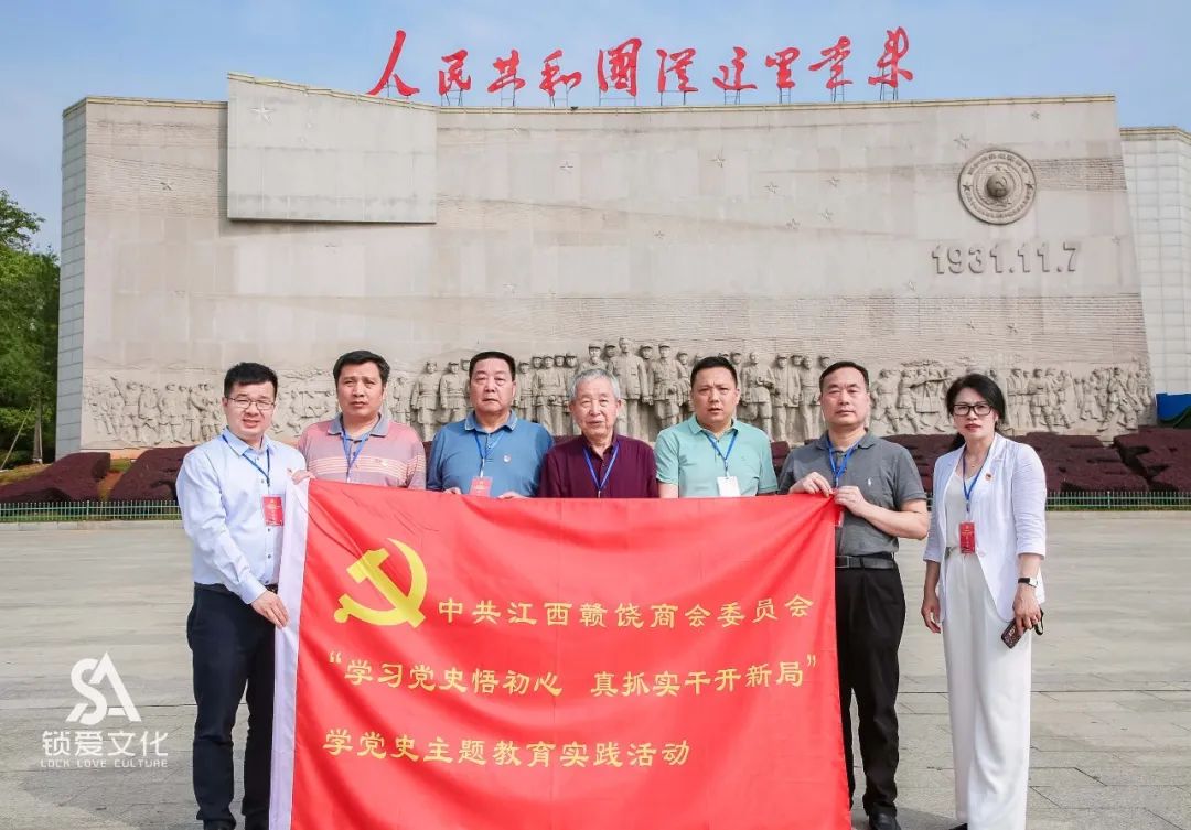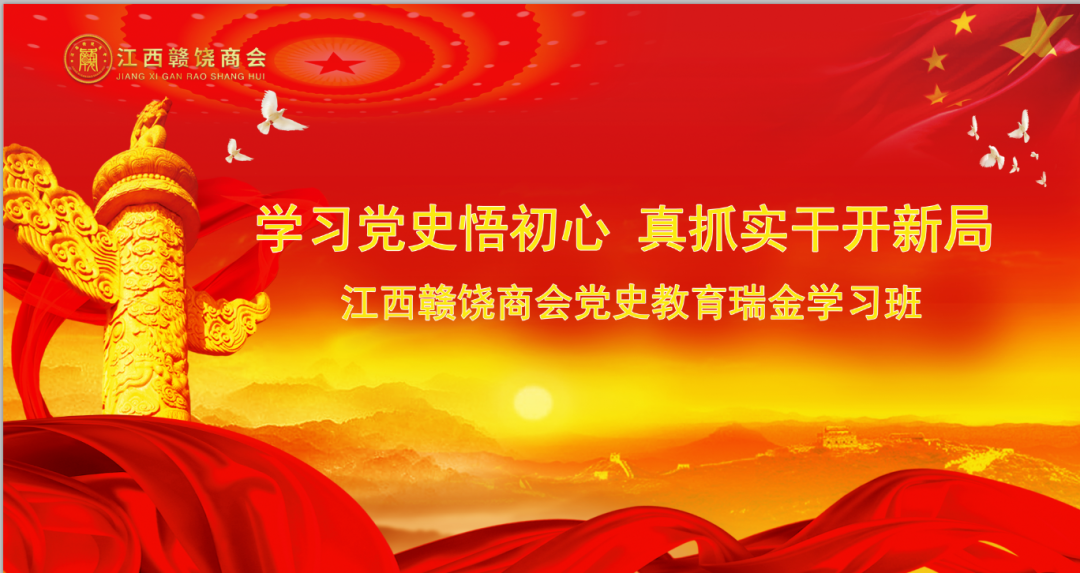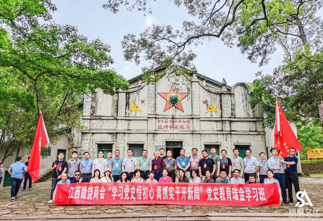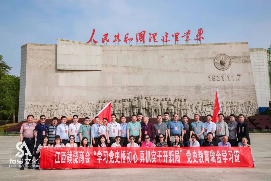 在建党100周年之际,为践行习总书记强调的“学党史、悟思想、办实事、开新局”,从苏区精神的源头汲取信仰的力量,筑牢爱党爱国的思想基础,江西赣饶商会于2021年5月8-9日举办了“学习党史悟初心 真抓实干开新局”党史教育瑞金学习班。学习班进行了党史知识讲座和微党课教育,参观了苏维埃政府的旧址。江西赣饶商会执行会长汪强辉,党委副书记徐礼成,秘书长余茂宗,第一支部书记兼副会长王朝有,副会长姚钱树、郑志金、吴旭凤、李太明、刘美霞,党委委员李占先、廖怀俊,副秘书长兼理事吴明珠,以及部分商会理事和会员参加了此次党史教育瑞金学习班。
