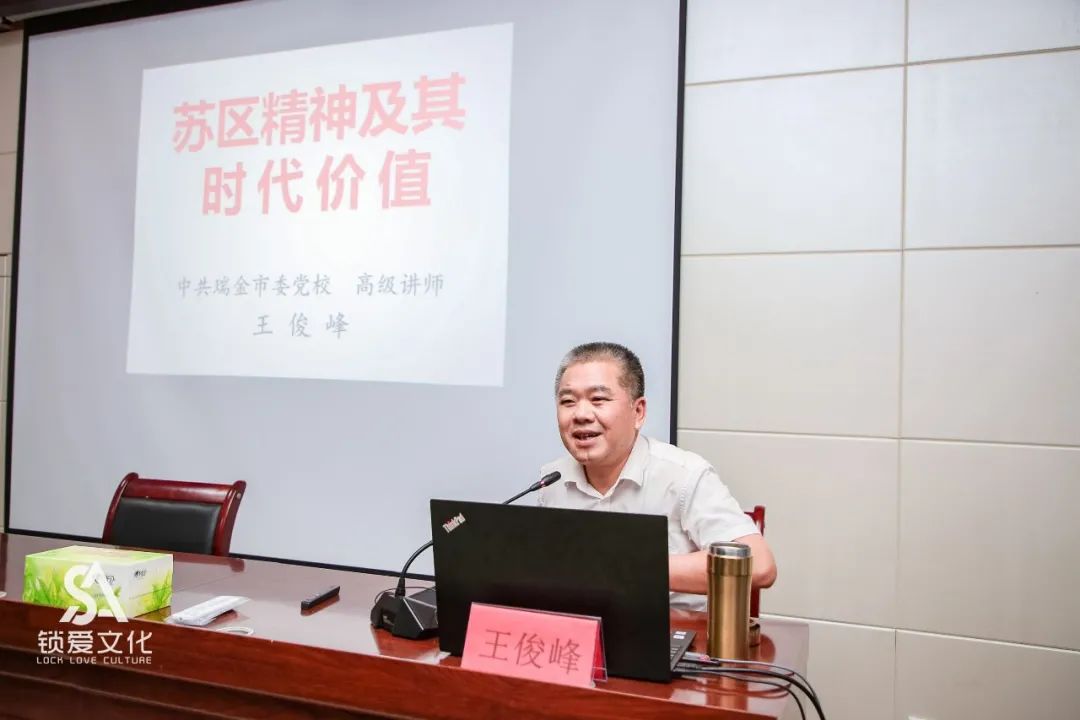 瑞金市委党校副校长王俊峰给我们做了《苏区精神及其时代价值》党史专题教学授课。大家认真聆听了王校长给我们讲解的苏区精神形成的历史背景、苏区精神的内涵解读以及苏区精神的时代价值。使学员们“坚定信念、求真务实、一心为民、清正廉洁、艰苦奋斗、争创一流、无私奉献”的苏区精神更加入脑入心。