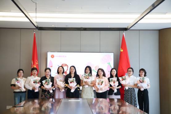 会长饶明芳,党委书记饶英奇,监事长秦秋阳,轮值会长、第二支部书记刘涛,执行会长汪强辉、罗贤敏、程顺林、张环福,常务副会长李晓东代表商会向在场的妈妈们送上一束精美的康乃馨。