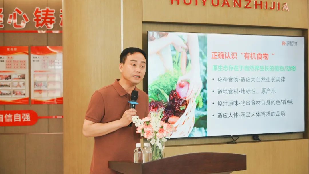 江西财经大学高级管理人员工商管理硕士解观胜老师为大家介绍了辉煌田地公司的发展历程,同时他普及了有机食品的知识,强调每天摄入的食物决定了身体的健康,呼吁大家关注饮食质量,保持更长久的健康。
