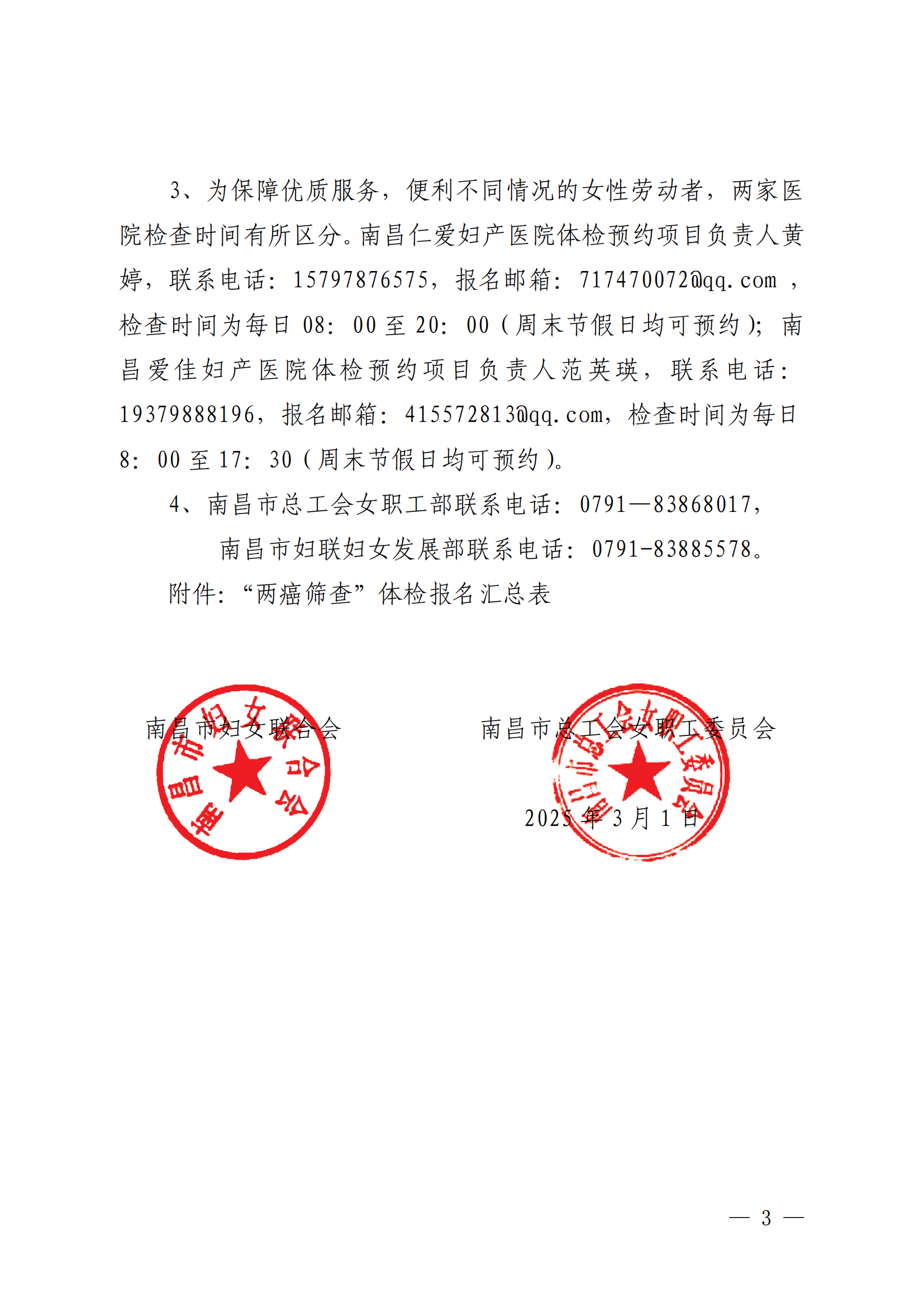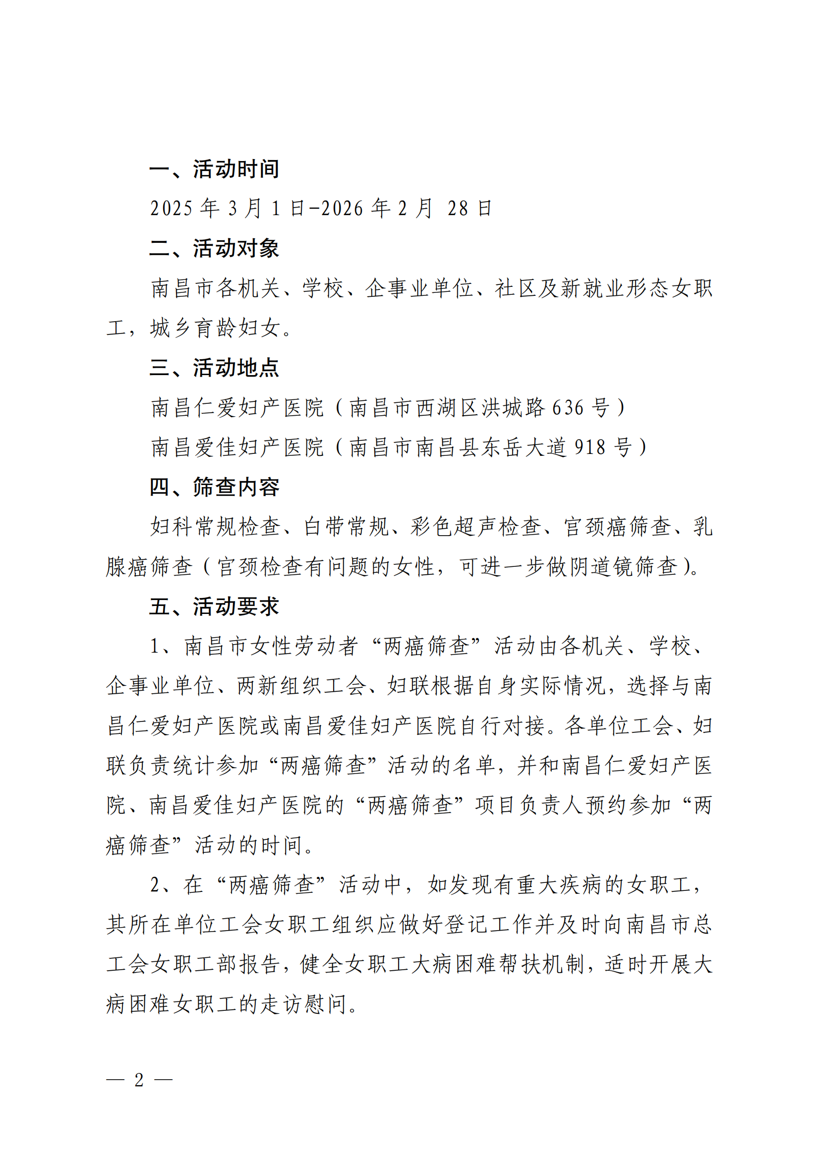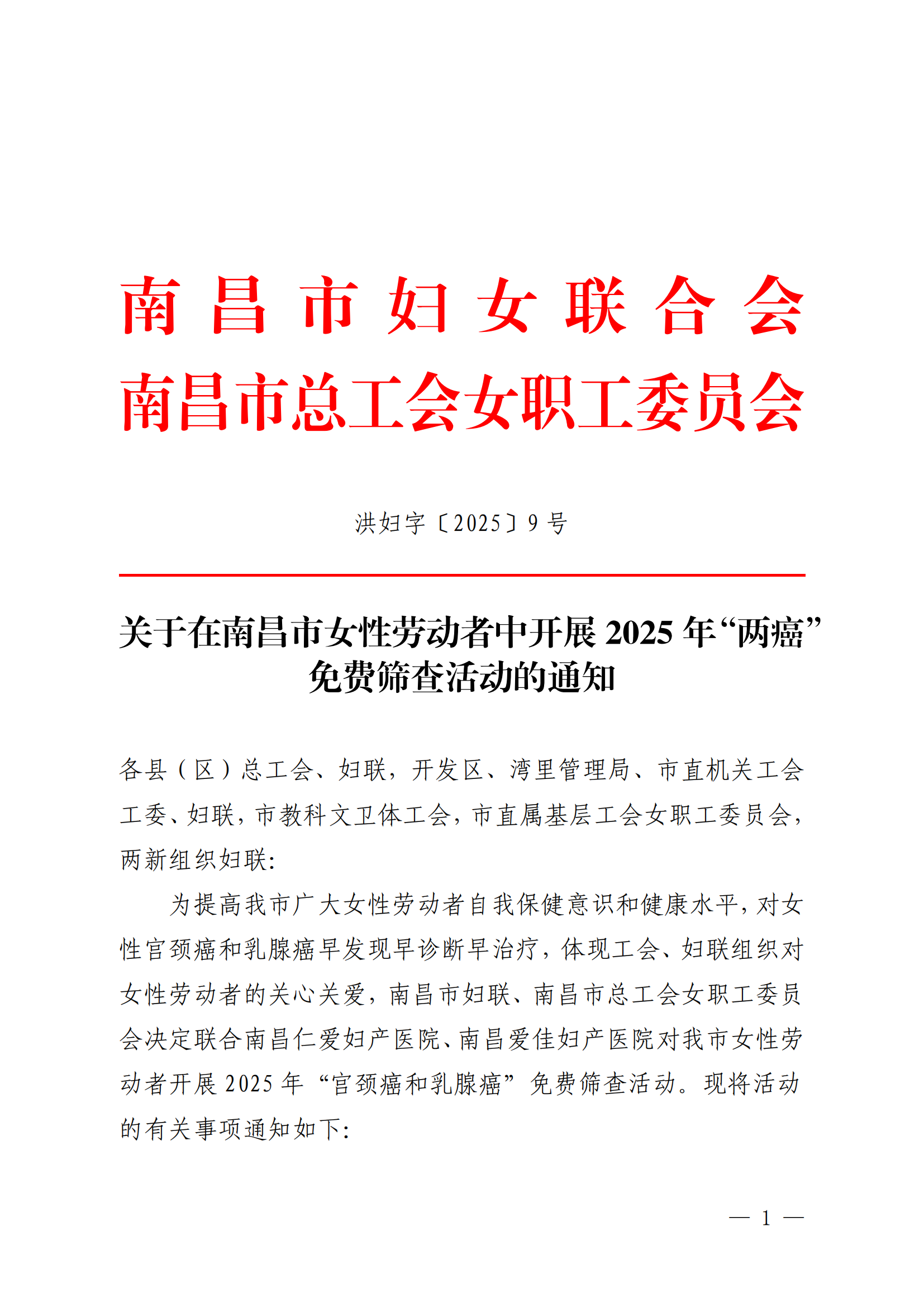 关于在南昌市女性劳动者中开展2025年“两癌”免费筛查活动的通知