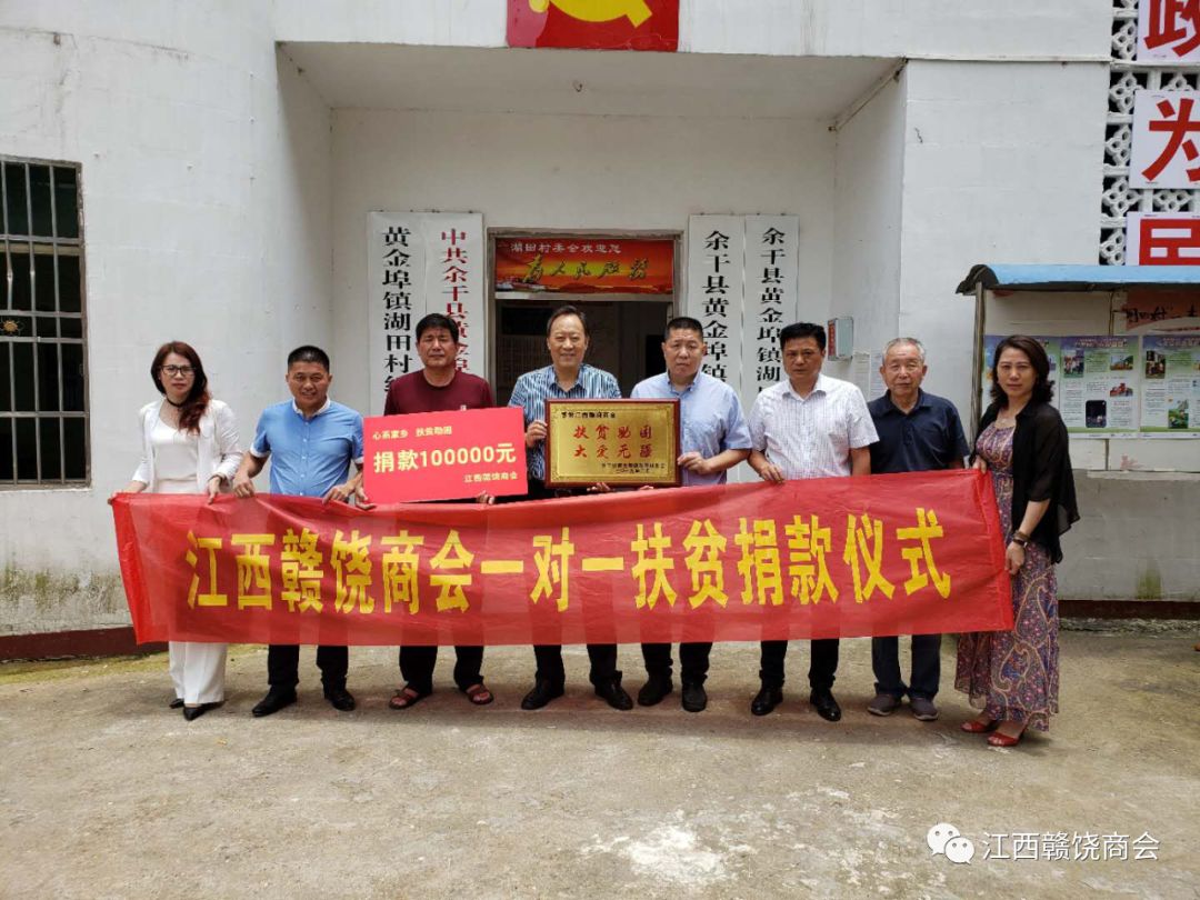 6月18日上午,赣饶商会会长张文木与执行会长秦秋阳、副会长刘涛、理事吴明珠、吴旭凤,以及前秘书长徐礼成,亲赴余干县黄金埠镇湖田村,送上我会专项扶贫款十万元。黄金埠镇党委委员、武装部长胡宇和湖田村委会领导班子热情接待,对我会的爱心奉献表示深切的感谢,并赠送了精心准备的″感谢江西赣饶商会扶贫助困大爱无彊“的铜牌。张文木会长在捐赠仪式上表示:家乡的发展始终牵动着在外拼搏发展游子的心,我们商会能为家乡的建设奉献一点点力量,也是一件利人利己的善事。