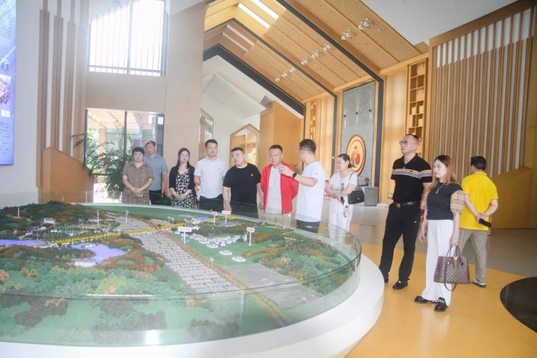 应江西省中小企业协会执行会长兼秘书长、南昌崇仁商会会长、江西南客出行服务集团董事长黄建国邀请,2023年8月7日上午,江西赣饶商会会长饶明芳带队走访黄建国会长单位——崇仁山凤小镇。轮值会长缪芬芳,执行会长黄洪英,执行会长兼秘书长周水强,执行会长郑志金,常务副会长李晓东,轮值副会长谢韩英参加。