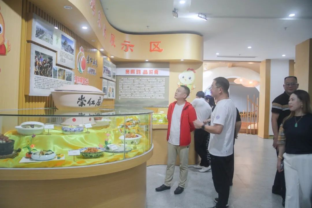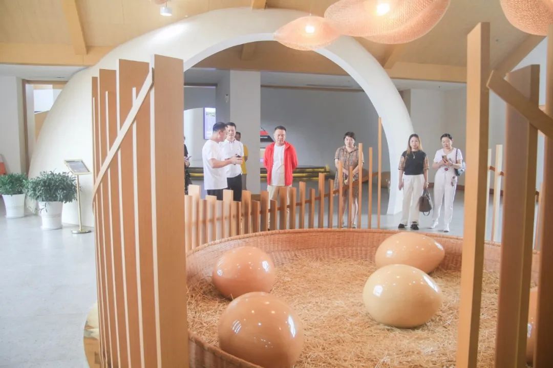 黄建国会长带领大家参观了山凤小镇客厅,厅内主题鲜明、亮点纷呈,生动的麻鸡Logo,多彩的麻鸡摄影作品,以艺术造型展示的仿真“麻鸡窝和麻鸡蛋”,陈设及装饰均有麻鸡元素。