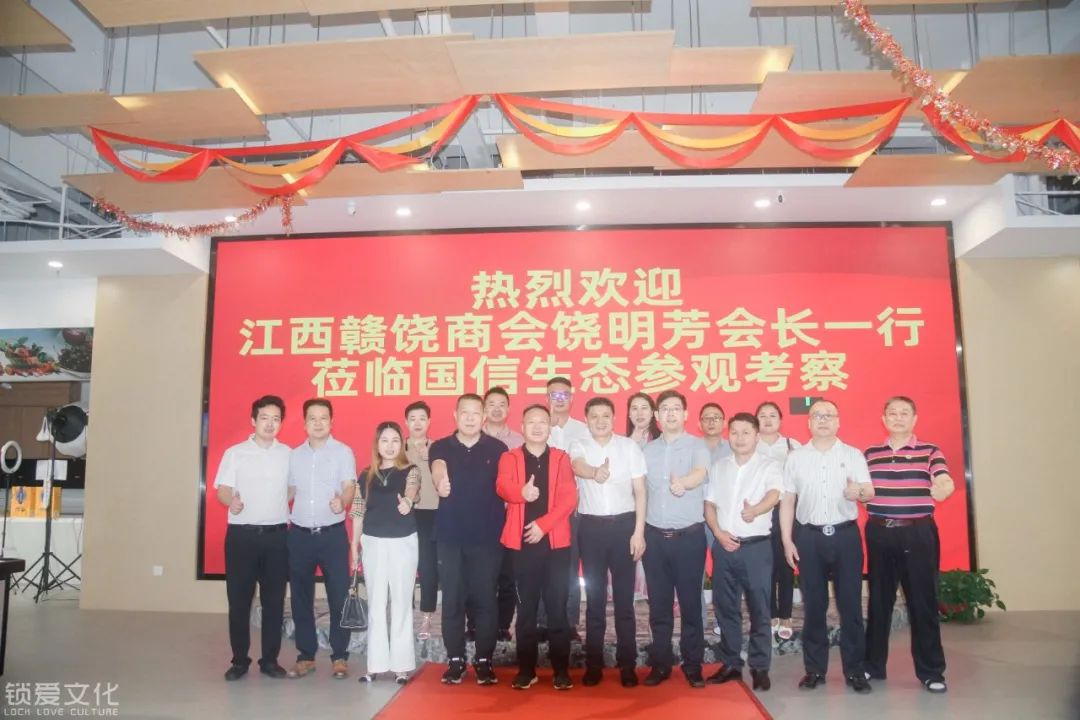 2023年8月16日下午,江西赣饶商会受邀前往青山湖区国信医药谷江西国信生态科技有限公司参观座谈。会长饶明芳带队,监事长秦秋阳,轮值会长聂丁科,执行会长黄洪英、刘涛、李东、罗贤敏、陈红怀、钟耀龙,常务副会长章解开,轮值副会长徐六凤、程元明,副会长步才博,理事兼常务副秘书长吴明珠,副秘书长张承凤参加。江西国信生态科技有限公司总经理周建东,运营总监董雪荣等热情接待。