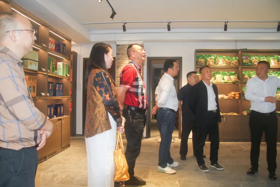汪强辉会长、南昌市婺源商会秘书长朱开泰等热情接待,陪同大家参观婺源特色产品展厅,并介绍了展厅里的婺源宣传片以及婺源茶叶、婺源梅干菜、婺源酒糟鱼、江湾雪梨等特色产品。