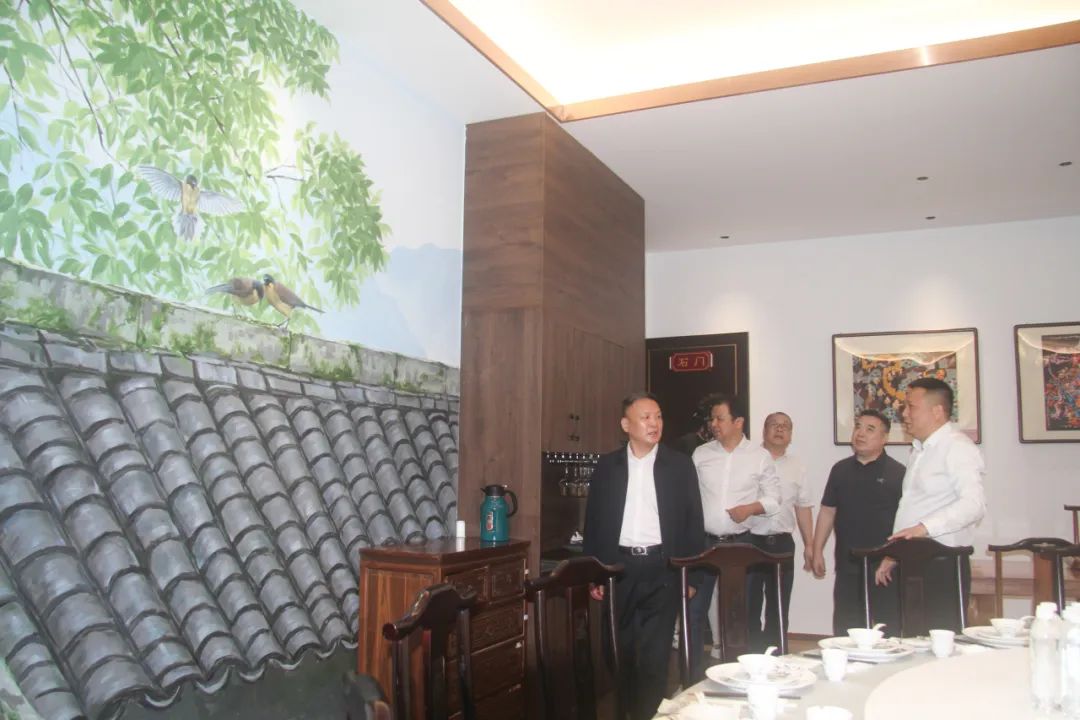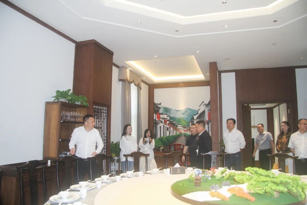 随后,大家参观了婺源宴的布局和环境,汪会长逐一向大家介绍了包厢名称的由来和每个包厢对应的风景手绘墙,展示了婺源宴独有的特色。
