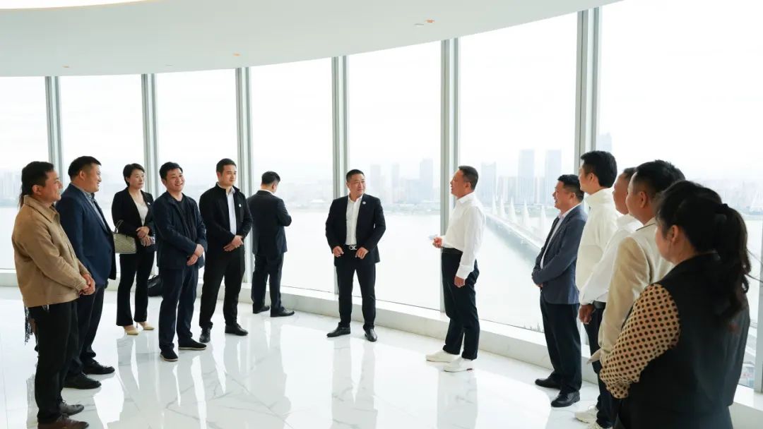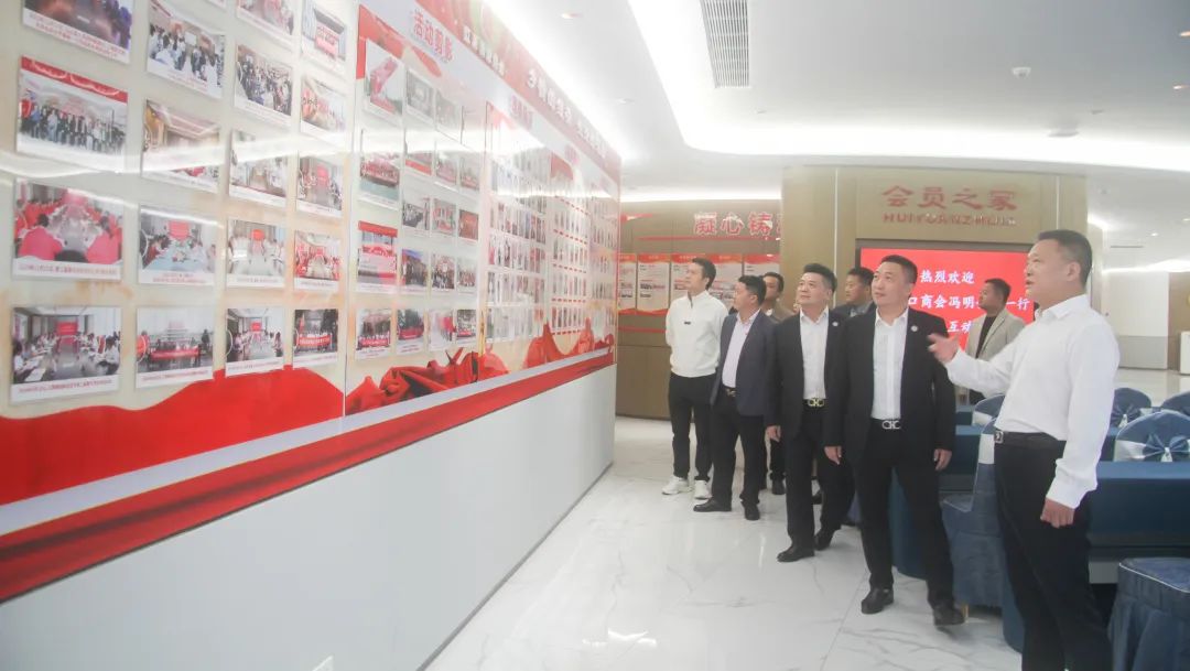 饶明芳会长陪同大家参观了商会的领导关怀、会长风采墙、荣誉墙、党建文化长廊和会员之家等。