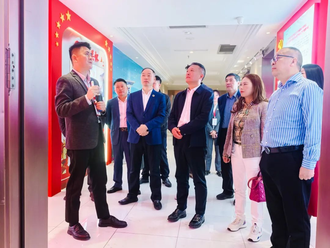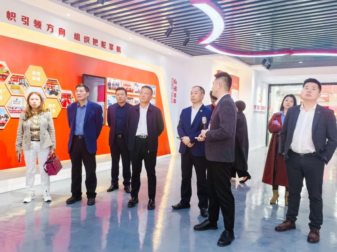 最后大家重点参观了“五红工程”展厅。徐胜平秘书长向大家介绍了“五红”工程的打造过程以及它的内涵和意义,并就商会党支部组织架构、发展历程、发展理念等做了详细介绍。