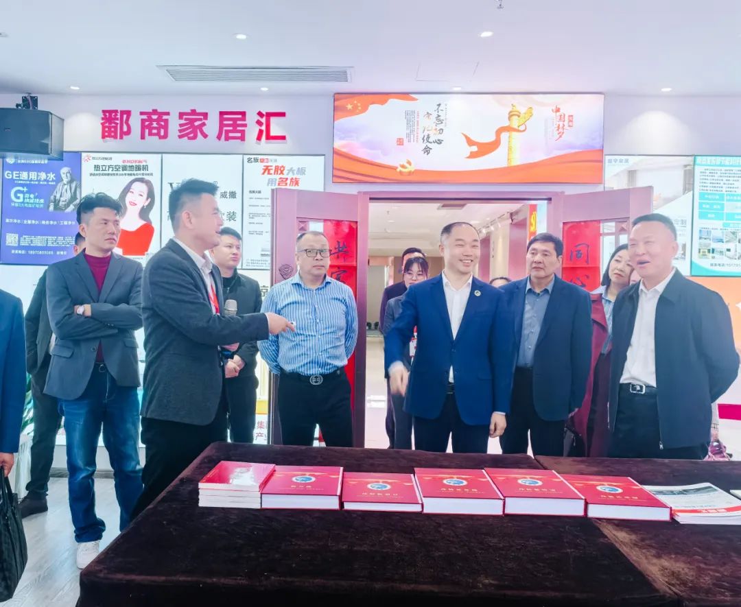 在程为理会长一行的陪同和徐胜平秘书长的介绍下,大家首先参观了鄱商大厦一楼大厅,听取了鄱阳商会基本建设情况和鄱商大厦打造历程、会员企业入驻情况,以及“厚德实干、义利天下”赣商精神标语以及其他标语展牌的设置意义。