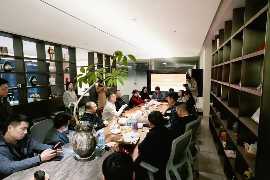 轮值副会长、江西省悟空装饰工程有限公司创始人章军明热情接待,陪同参观公司办公场所、会客厅及茶室等,并与大家展开座谈。