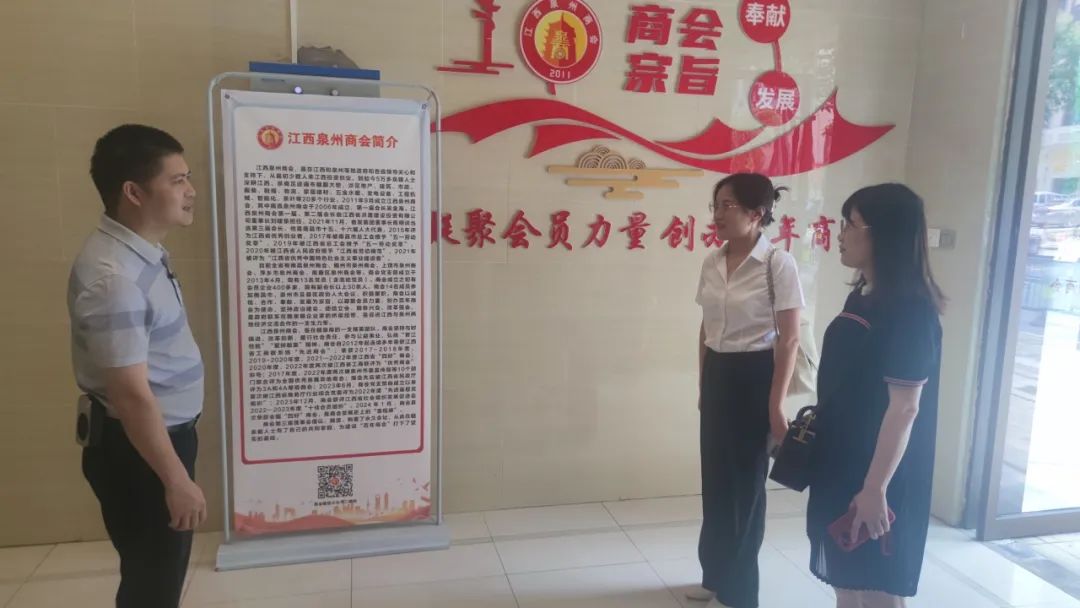 2025年6月5日上午,我会执行秘书长张承凤携秘书处赴江西泉州商会走访交流。江西泉州商会秘书长张文超、办公室主任廖放军等热情接待。张文超秘书长通过讲解,带领大家参观会址,介绍了商会基本情况,并与大家展开座谈。