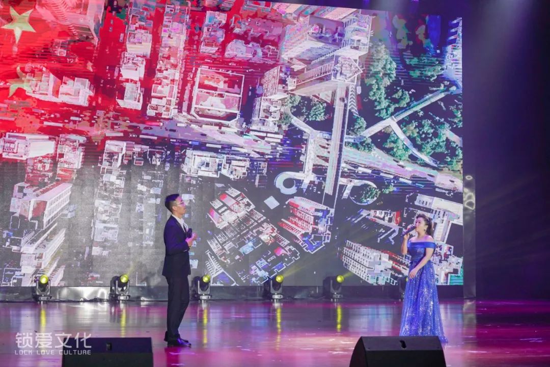 比赛节目结束后,在饶明芳会长的带领下,江西赣饶商会副会长以上领导班子成员及参赛者们精神抖擞,登台齐声高唱《没有共产党就没有新中国》,赢得全场热烈鼓掌。