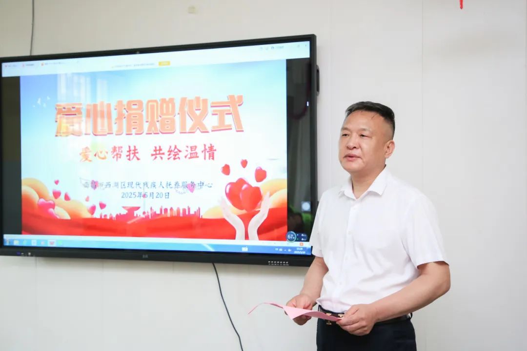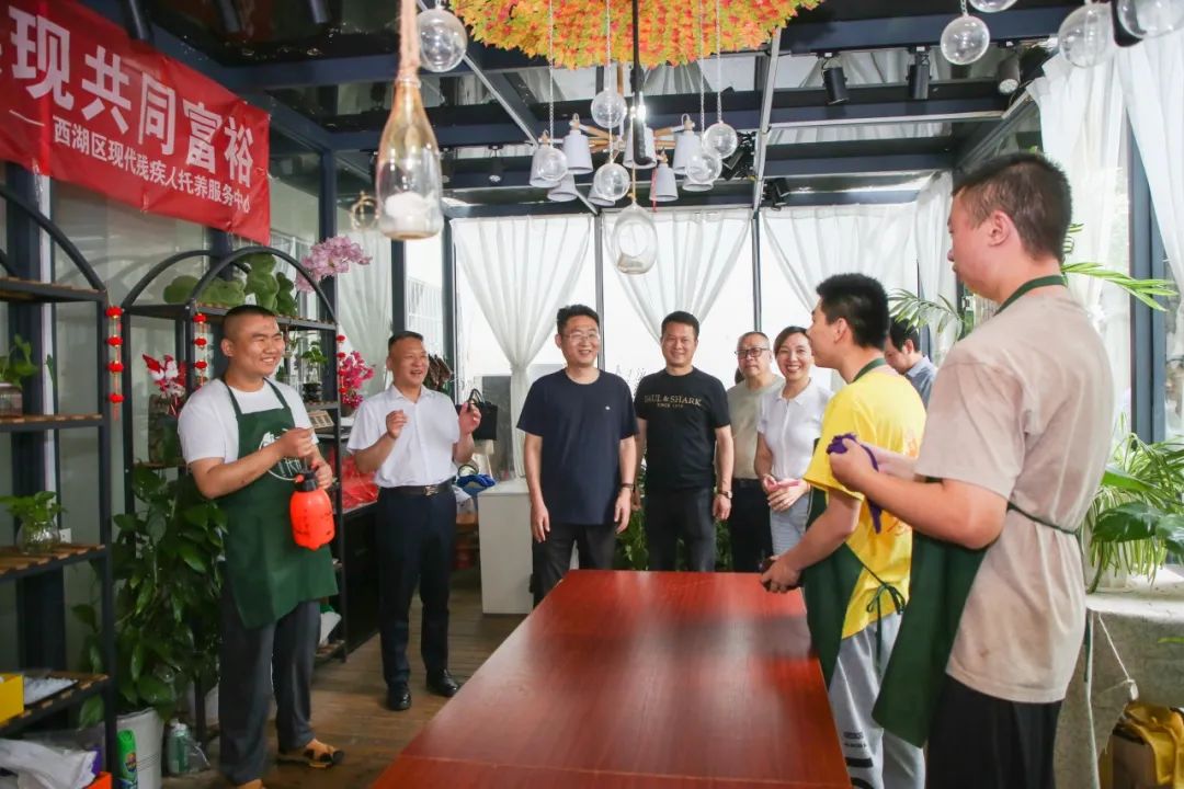 2025年5月18日是第三十五次全国助残日,为深入践行社会责任,关爱残疾人弱势群体,在前期对西湖区现代残疾人托养服务中心进行参观调研的基础上,2025年5月20日下午,我会组织开展“关爱残障・温情共筑”公益活动。西湖区残联党组成员、副理事长胡翔出席活动。会长饶明芳,执行会长李东、陈红怀、郑志金,常务副会长兼常务副秘书长李太明,执行秘书长张承凤,轮值理事兼副秘书长吴虹云,轮值理事朱义庆等参加活动。