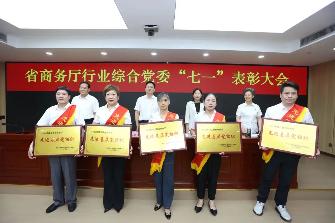 会议在庄严的国歌声中拉开序幕。会上,江西省商务厅机关党委专职副书记、直属机关纪委书记黄花宣读了《江西省商务厅行业综合党委关于表彰2024年度“先进基层党组织”的通报》,并为代表颁发奖牌。