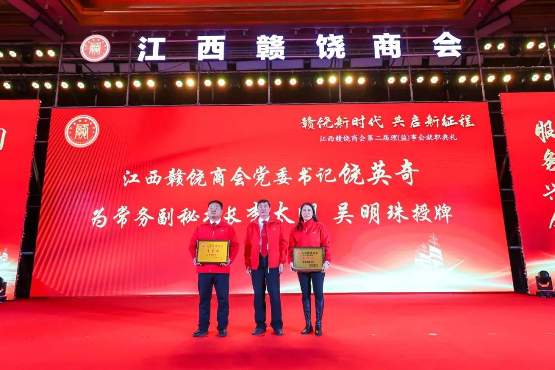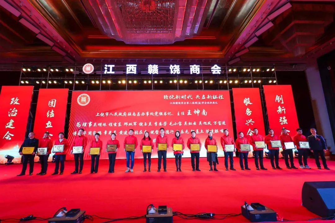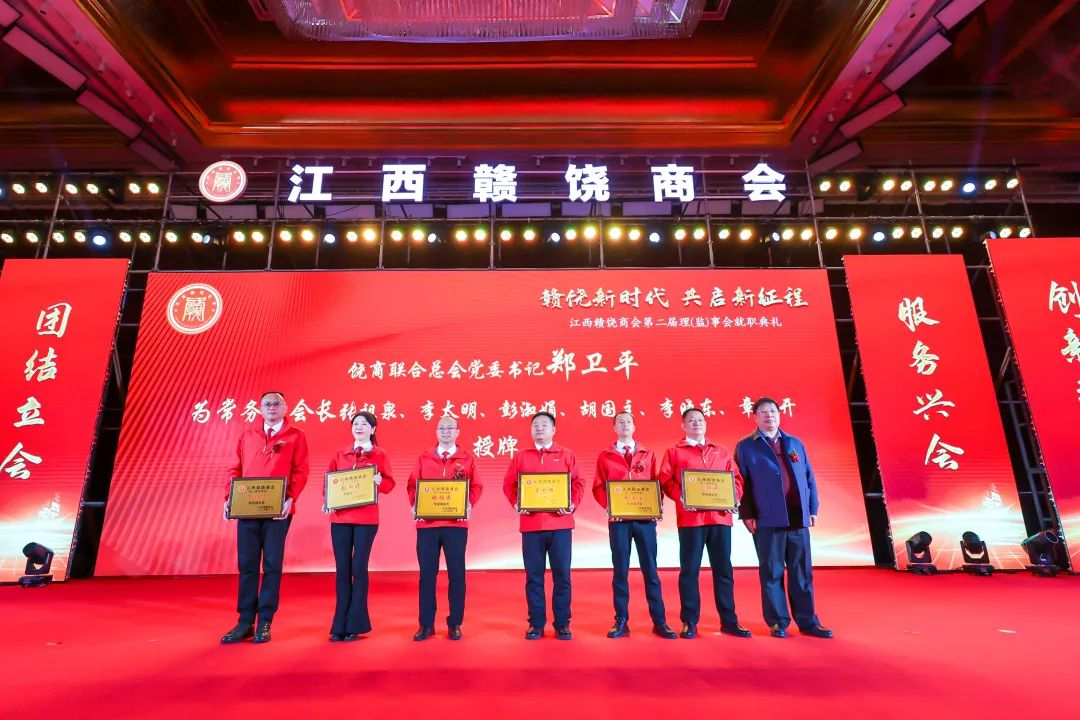 就职仪式上,与会领导嘉宾为江西赣饶商会理(监)事会成员授牌。
