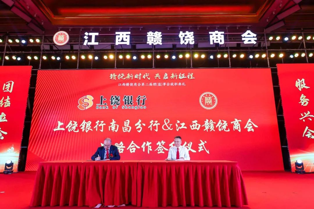 上饶银行南昌分行行长杨海洋与江西赣饶商会会长饶明芳作为双方签约代表进行现场战略合作签约