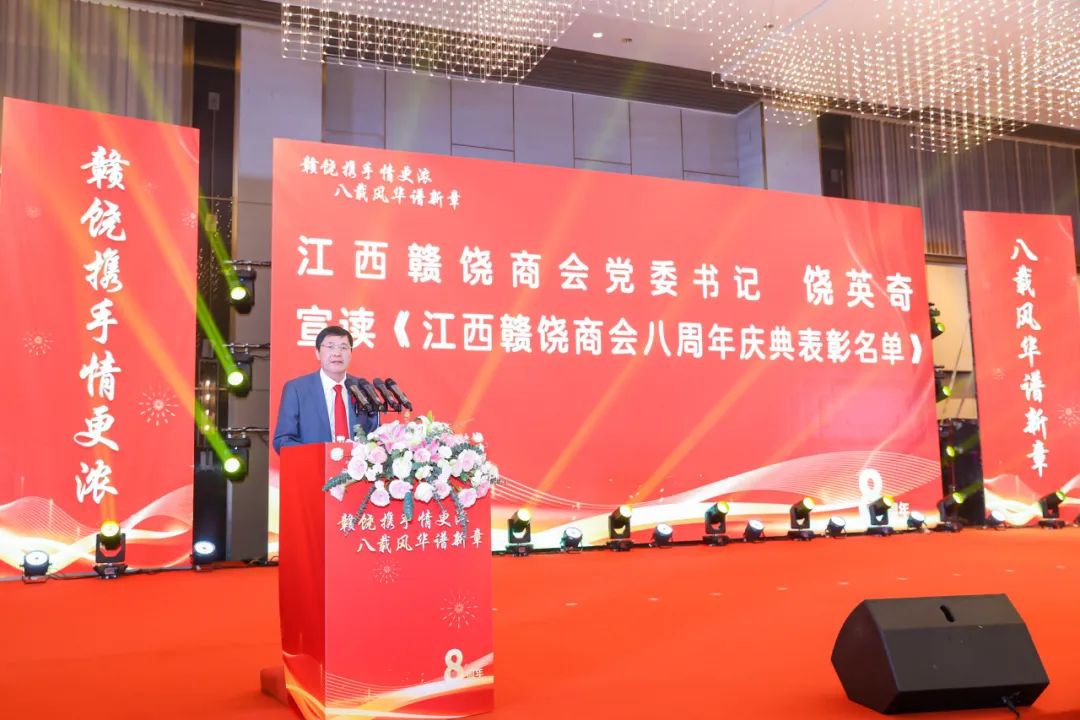 饶英奇书记宣读《江西赣饶商会八周年庆典表彰名单》。