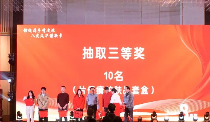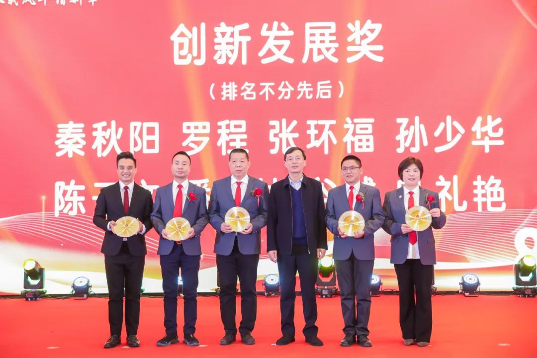 李媛媛副县长为行业杰出奖获得者聂丁科、陈红怀、彭淑娟、张祖泉、李晓东、徐六凤、王寅、步才博颁发奖牌。