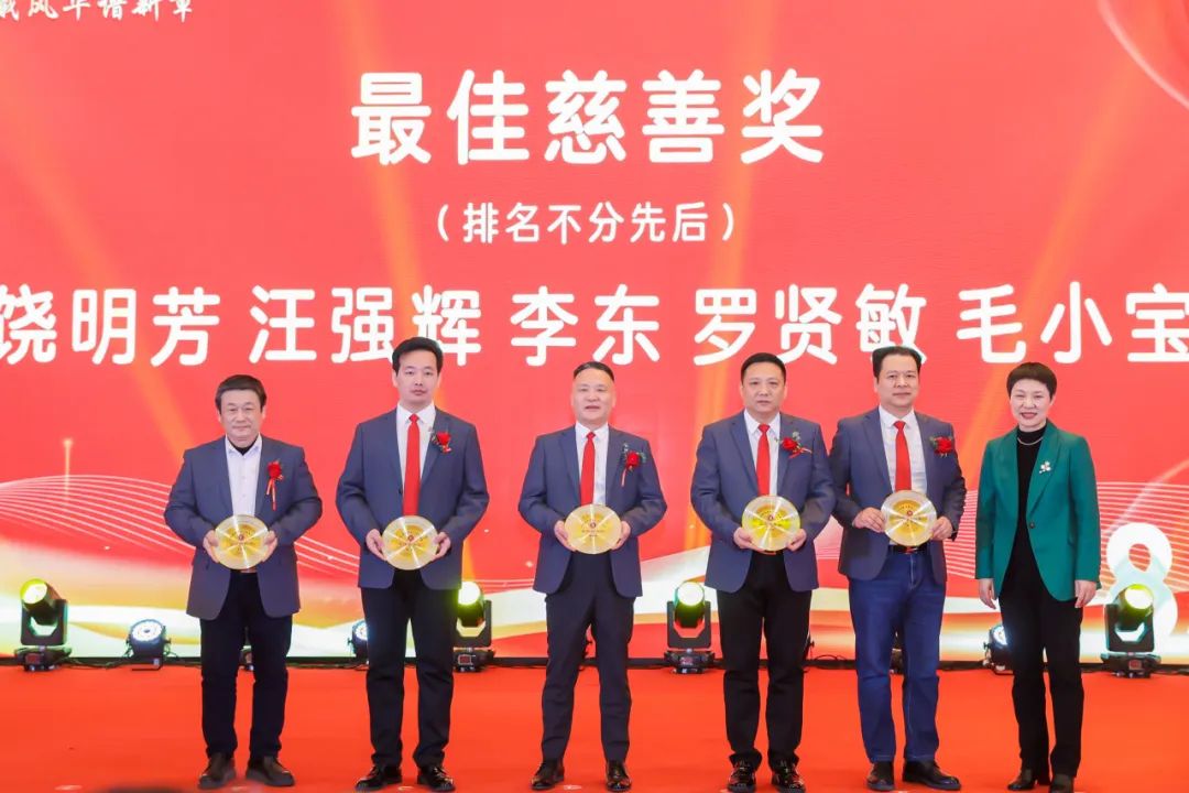 郑艳斐主席为最佳慈善奖获得者饶明芳、汪强辉、李东、罗贤敏、毛小宝颁发奖牌。
