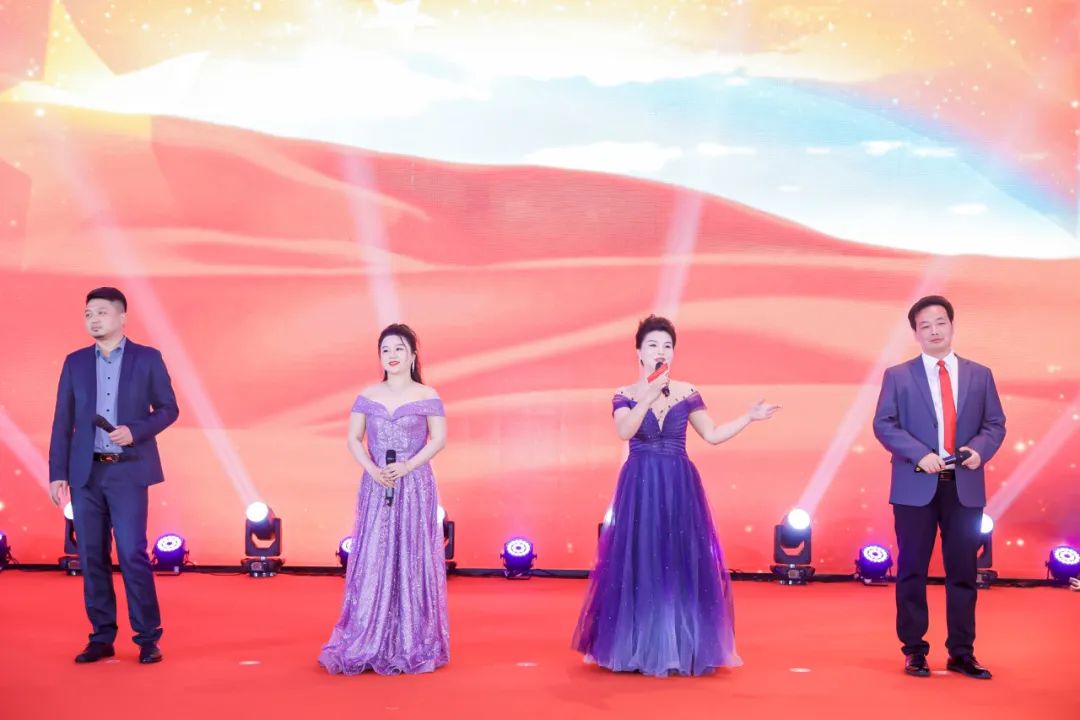 晚宴上,饶明芳会长带领商会班子及副会长成员登台激情献唱《中国人》并致祝酒词,现场气氛热烈,掌声不断。