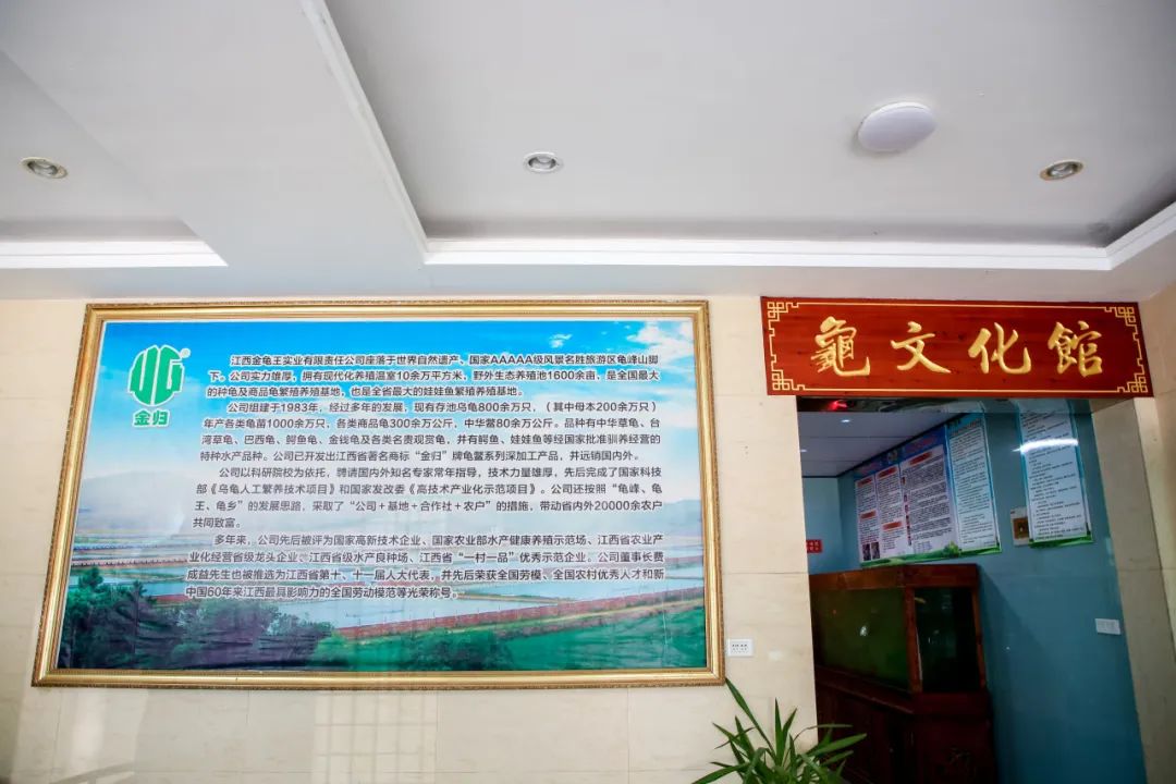 大家来到弋阳县江西金龟王实业有限责任公司。公司座落于世界自然遗产、国家5A级风最名胜旅游区龟峰山脚下,拥有现代化养殖温室10余万平方米,野外生态养殖池1600余亩,是全国最大的种龟及商品龟繁殖养殖基地,也是全省最大的娃娃鱼繁殖养殖基地。