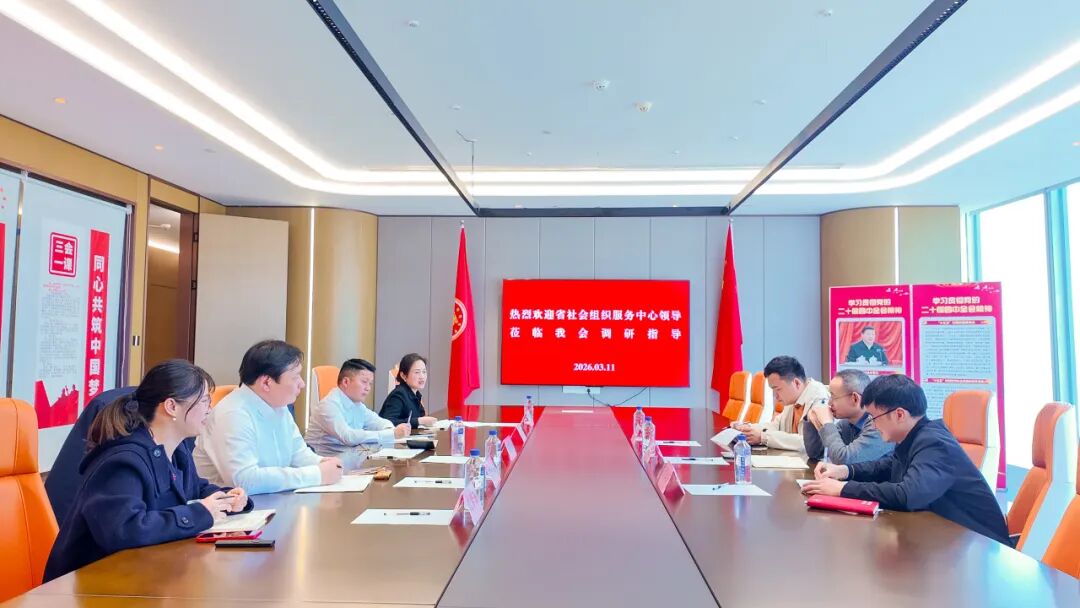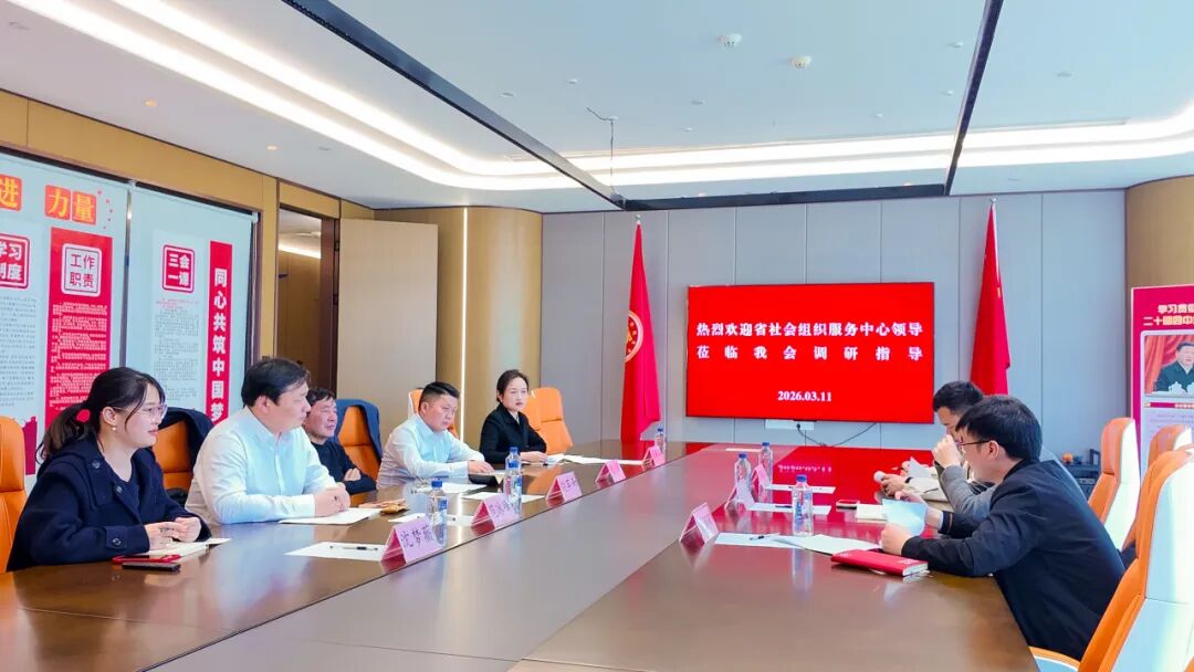 2026年3月11日下午,江西省社会组织服务中心副主任熊志亮、刘润萌、邓清华一行莅临我会调研指导,就社会组织等级评估工作走访交流。我会党委书记饶英奇,执行会长、第二支部书记刘涛,轮值副会长范冰峰,执行秘书长张承凤等热情接待并参加座谈。