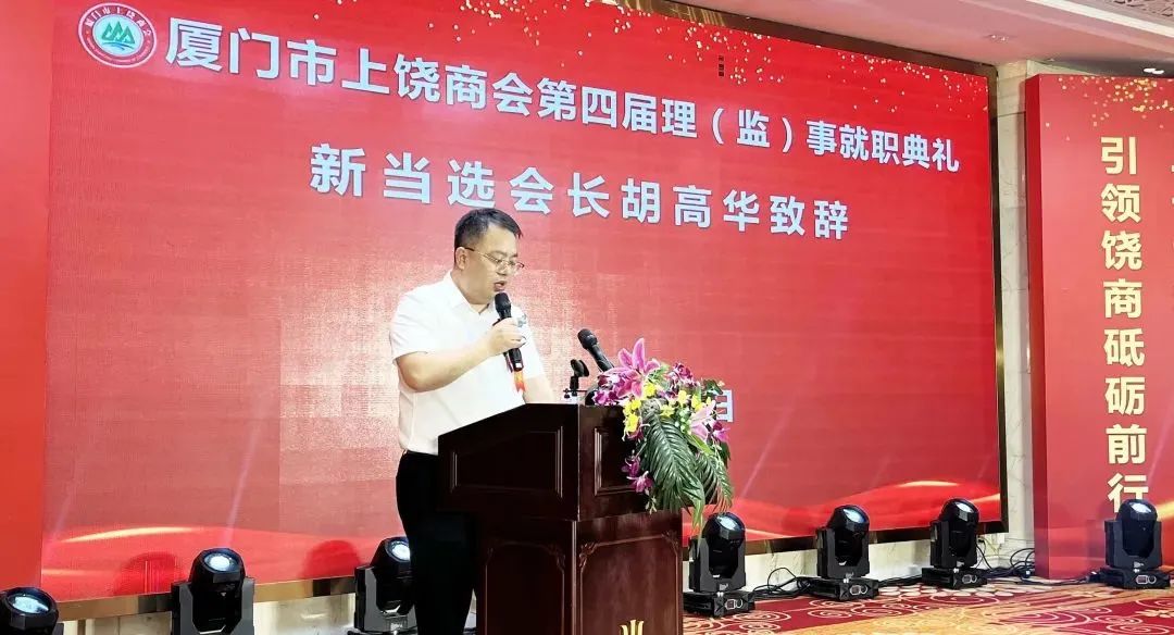 福建省军区原副司令员朱光泉代表在闽赣籍老领导讲话,厦门市工商联副主席林志宏到场祝贺,饶商联合总会会长陈新到会致辞,胡高华发表就职致辞。随后,胡高华带领商会新一届班子成员祝酒。活动现场气氛热烈而和谐,与会人员畅叙乡情,共话发展,其乐融融。