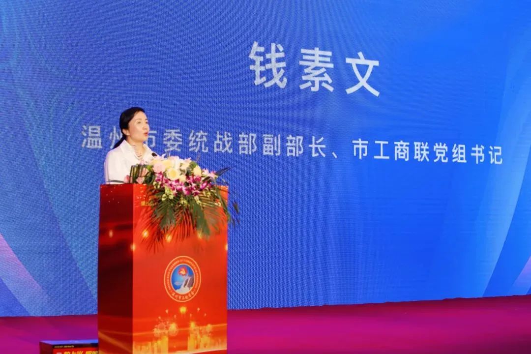 ▲温州市委统战部副部长、市工商联党组书记钱素文讲话
