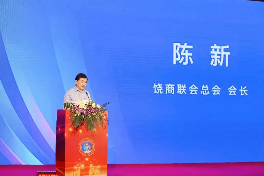 上饶饶商联合总会会长陈新出席并致辞。他提到,第三届全球饶商大会、饶商联合总会成立十周年、商会换届系列活动将于6月16-17日举办,希望广大饶商群策群力、办好大会。