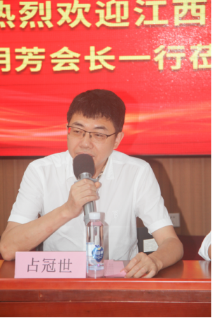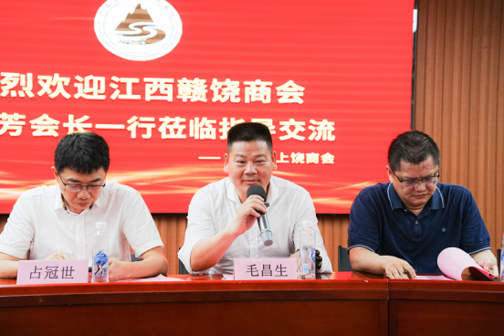 占冠世会长首先对我会饶明芳会长一行的到来表示热烈的欢迎,随后从思想建设、组织队伍、党建情况、历程与发展等方面详细介绍了广东省上饶商会,指出商会成立以来一直为商会会员建立资源共享、合作共进,充分交流的综合性服务平台,充分发挥政府与企业、企业与企业之间的桥梁和纽带作用,不间断开展各种形式的活动,为会员提供招商、投资、技术、医疗、教育、文体旅等各项服务。他希望通过此次座谈交流,两会之间相互借鉴办会心得,取长补短,携手共进、互利互赢、共促发展,共同为上饶社会经济发展贡献力量。