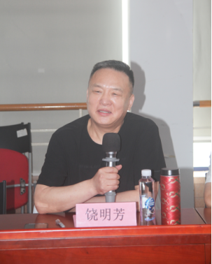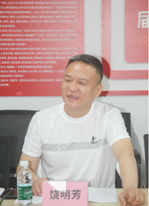 在听取完占会长公司的介绍后,饶明芳会长首先对广东省上饶商会的热情接待表示感谢,随后讲到占会长从2002年开始到2024年,整整22年拼搏和努力,从20平方的小地方,逐渐发展成为体育产业链公司,让大家开阔了眼界,启发了思路,很多先进的企业文化、理念和管理经验值得大家学习和借鉴。同时指出广东省上饶商会有很多成功的办会经验值得学习并带回去,这就是这次走出来的目的和意义所在。他希望两会今后能多多交流,信息互通,资源对接,为提升商会及会员企业发展创造更多的可能,共同把饶商精神在赣粤两地发扬光大。