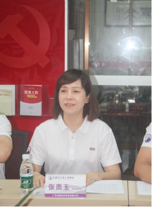 张贵玉书记在发言中详细介绍了东莞市江西上饶商会支部党建情况,重点提到支部始终坚持与商会互促共进,以党建引领会建,争做排头兵,充分发挥党员的先锋模范作用,支部始终围绕商会的核心工作发挥作用,帮助和支持商会开展各项工作。她希望能加强两会间的党建工作交流,力争使两会党建工作再上新台阶。