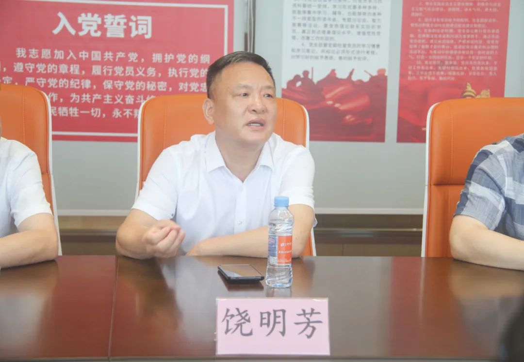 饶明芳会长对兄弟商协会同仁来我会参观交流表示欢迎。他介绍了自己的企业,分享了企业经营和管理的好经验、好做法。他表示商会要发挥好桥梁纽带作用,凝聚乡情,为会员企业提供一个交流、合作、发展的平台,同时要加强与兄弟商会之间的互动,引导助力会员企业抱团发展,实现合作共赢。