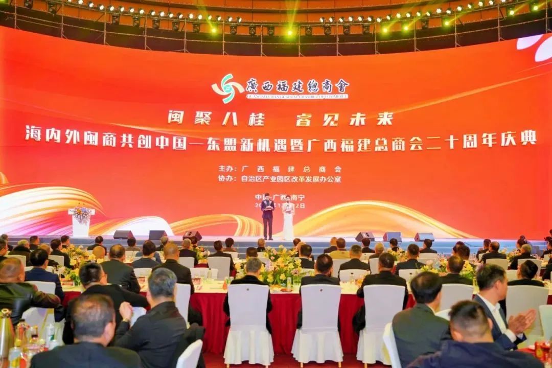 12月22日,由广西福建总商会主办、广西壮族自治区产业园区改革发展办公室协办的海内外闽商共创中国—东盟新机遇暨广西福建总商会二十周年庆典在广西南宁圆满举办。福建省政协副主席、省工商联主席王光远,自治区人大常委会副主任、民进广西区委会主委杨静华,自治区副主席廖品琥,福建省委统战部副部长、省工商联党组书记陈晞,自治区人大副秘书长宋震寰,中国侨联副主席、广西侨联主席陈洁英,自治区园区办副主任、园区投促中心代主任覃元臻等领导出席活动。广西福建总商会会长林谋悦在会上致欢迎辞。