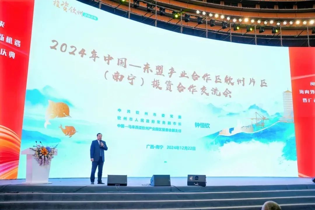 庆典前举行了投资推介会。钦州、梧州、崇左、南宁、北海、防城港、贵港、百色、来宾、河池等市相关负责人围绕产业资源、营商环境、优惠政策等多方面作了投资推介。