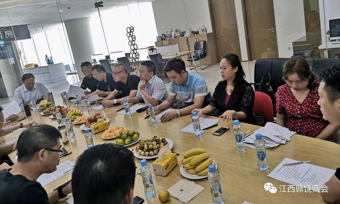 2019年9月19日下午,江西赣饶商会在南昌新力中心召开了第9次会长办公会议。省工商联副主席、商会会长张文木,总执行会长饶明芳,执行会长邹文国、秦秋阳、黄洪英、王建丰,常务副会长卢滨,副会长戴福华、汪强辉、余凤芳、刘涛、张志敏、张小燕、郑志金,商会党委(筹)饶英奇,商会秘书长多超参加会议。