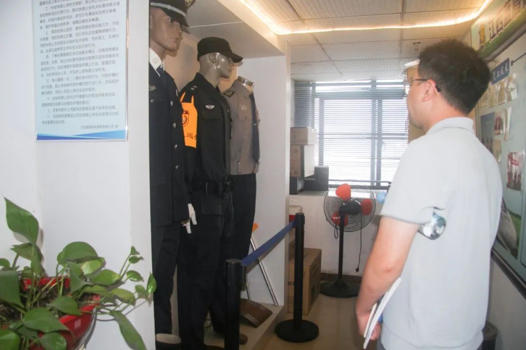 李贵福董事长对大家的到来表示热烈欢迎,带领大家参观了公司办公场所、保安服装模特展示、装备展示柜等,并简要介绍了江西蓝盾保安服务有限公司的概况。