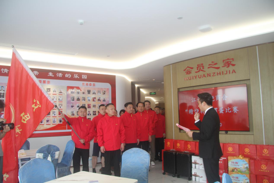 在饶大春会长的主持下,刘涛轮值会长高举着会旗,大家排着整齐的队伍,整齐划一地喊着“掼蛋掼蛋,赛出赣饶风范”的口号健步入场。