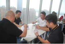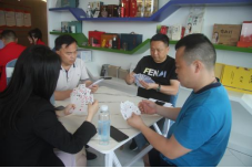 饶明芳会长在开赛前致辞,他表示商会以推广掼蛋文化为抓手开展活动,既丰富了活动形式,又起到了搭平台聚人气的作用,希望通过活动增进相互间的沟通和感情,提升商会内外的交流合作,实现资源共享。饶会长最后宣布江西赣饶商会“赣饶杯”掼蛋比赛正式开始。