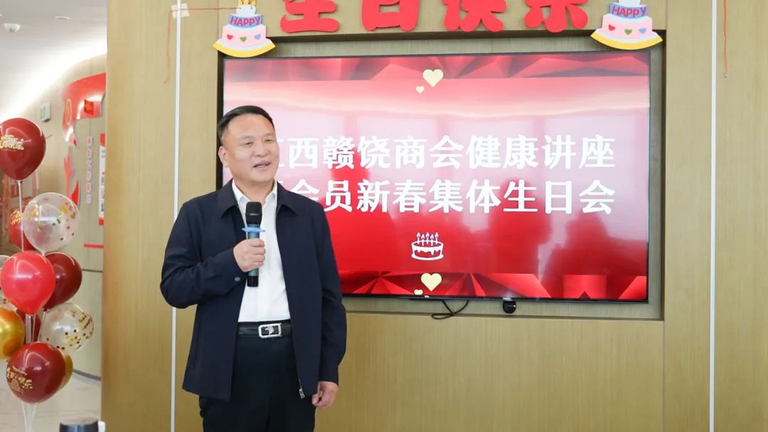 饶明芳会长作为寿星代表发表致辞。他首先对各位会员送上亲切的新年问候,并讲述了自己对于健康保养认识到的必要性、重要性和提前性。他表示,健康是立身之本,会员健康是商会发展之基。希望今天的讲座能进一步提高会员的健康知识储备,给大家普及健康知识、传播健康观念,促进商会精神文明的建设。