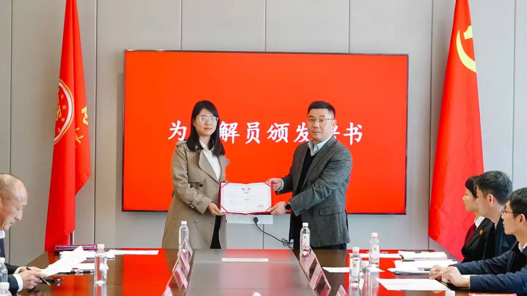 南昌市大学公证处副主任沈楚锋表态,2019年起与法院做司法辅助对接,自觉遵守调委会工作纪律和规则,配合法院工作流程,做好司法确认衔接,为商会做贡献。