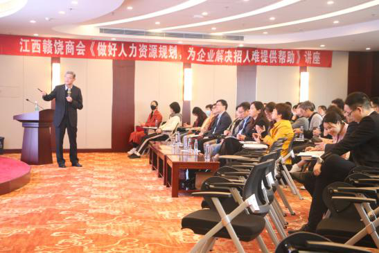 江西赣饶商会于2021年4月16日下午在南昌市红谷滩区赣江北大道1188号商联中心B2南塔楼十楼第二会议室举办了《做好人力资源规划,为企业解决招人难提供帮助》讲座,本次讲座由江西省民营企业人才服务中心承办,特邀省民营企业人才服务中心负责人李兆文主讲,江西赣饶商会执行会长黄洪英、王建丰,秘书长余茂宗,副会长徐六凤、吴旭凤、聂丁科、刘美霞以及商会会员共50余人参加了此次讲座。