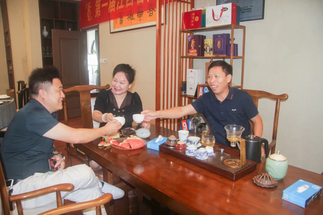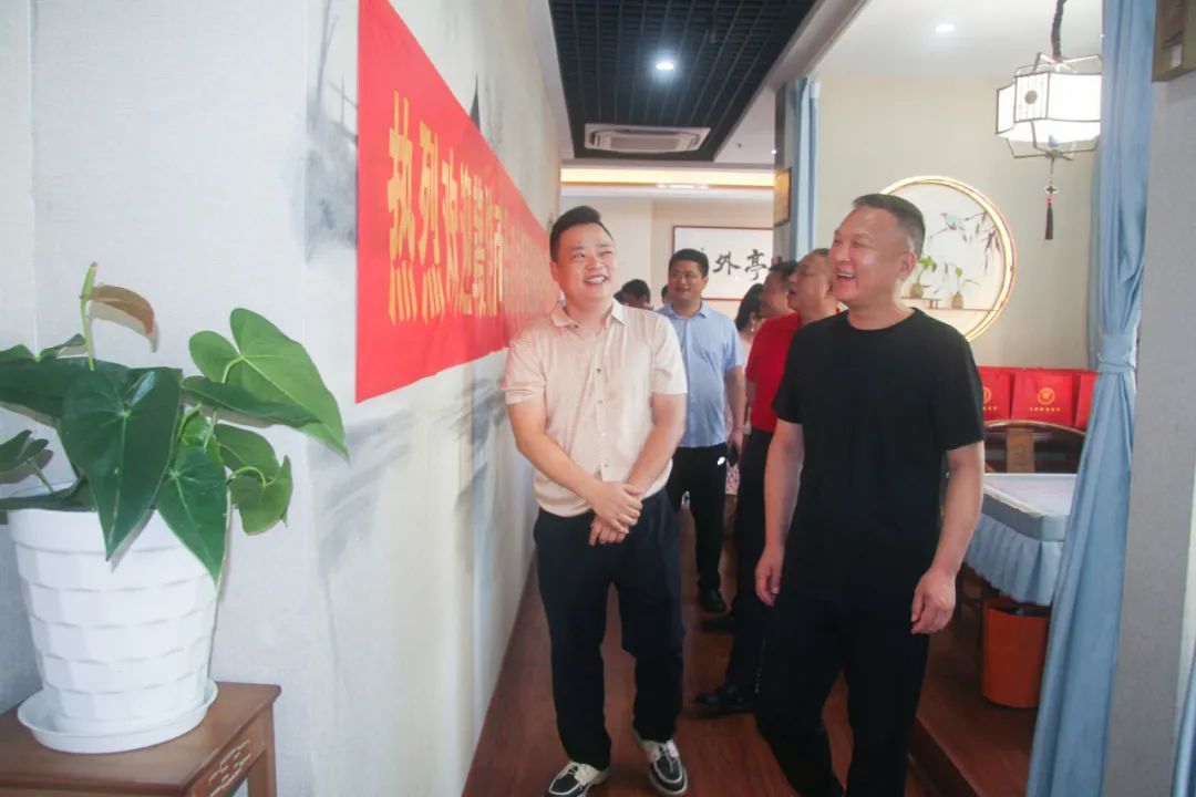 长亭外餐厅总经理余飞热情接待,带领大家参观了餐厅的环境,介绍到餐厅有茶室、棋牌房、KTV等功能区域,休闲娱乐功能齐全,能满足大家喝茶聊天、商务洽谈、聚会用餐等需求。