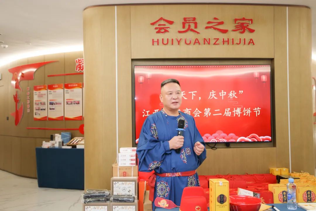 饶明芳会长在讲话中首先对赞助方丞天下、片仔癀、华宏奔驰、聂丁科执行会长、李委芳理事兼副秘书长、王晓琴理事为本次活动赞助礼品表示感谢。他介绍到中秋博饼是闽南地区的传统民俗,是国家级非物质文化遗产之一。他指出,把博饼节引进江西赣饶商会,希望增加节日的乐趣,通过游戏彩头对大家送上美好祝福,同时希望大家通过游戏的方式,在娱乐中互相认识,加强交流,促进合作。