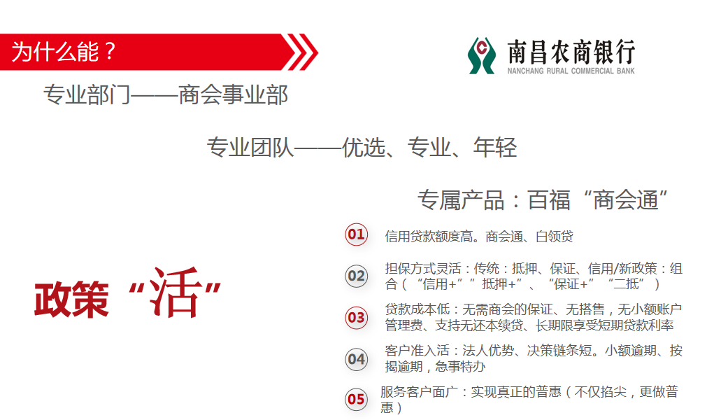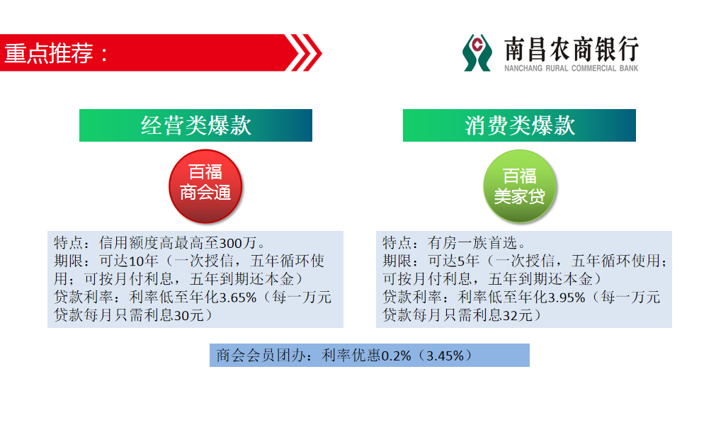 商会事业部经理刘慧琴将南昌农商银行针对我会会员推出的百福“商会通”等特色产品和金融政策以及相关的理财产品作了详细的介绍。