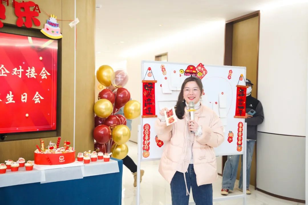 新的一年开启新的希望,为增强会员之间的沟通交流,促进会员之间的合作发展,2024年2月28日下午,商会在会员之家举办银企对接会暨会员新春集体生日会。执行会长刘涛,常务副会长兼常务副秘书长李太明,常务副会长李晓东、谢韩英,副会长董阳东、喻腰华、程玲琴、谷越(胡世钦),执行秘书长张承凤,理事兼副秘书长吴虹云、邱双军、饶玉兰、毛小宝,11、12、1、2月寿星代表以及部分会员家人共计60余人参加活动。